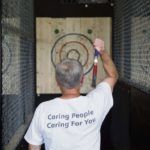 Each person throws three axes for 10 rounds. If there is a tie, players go one more round and then sudden death if needed. Costs start at $20 an hour.
