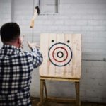 The pressure of the world goes away when you sink the head of an ax into a wooden target, Jenkins says.
