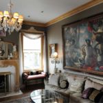 The main floor includes a parlor, living room and dining room that seats 15 comfortably. Guests will see everything from original lead-crystal glass in the door to crystal chandeliers, including one where every piece is unique. The parlor features a 1650 painting of Bacchus, the god of wine and celebration.