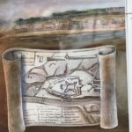 The mural starts with construction of the fort in 1758, shows the plans for the fort, and concludes on Oct. 12, 1758, when French soldiers and native scouts arrived to attack the outpost.