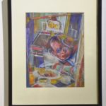 Mary Weidner of Fox Chapel displays two gouache paintings — “South Beach Male” and “Break Fast.” The latter is not only a gouache painting, but also includes bits and pieces collaged from previous paintings.