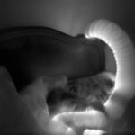 To make the scanographs, Goshay placed or spun objects (a pill box, finger cymbals, trinkets, anything) on a flatbed scanner while it was going off.