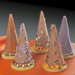 Line a large baking sheet with sides with wax paper. With a small metal spatula or butter knife, spread a thin layer of frosting on each cone (be sure to save some frosting to adhere cones to cookie hat base—about ¾ of a cup). Place frosted cones on baking sheet. Sprinkle with sugars and sprinkles. Let stand for one hour to allow frosting to set.