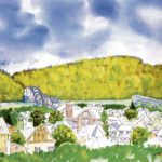 “The teacher had the class walk out from school into the village to draw a scene with a dip pen and bottle of ink,” she said.