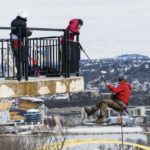 The outdoor enthusiasts, many skilled mountain climbers, clipped on their carabiners to pick trash from the hillside.