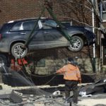 The impact tore the waterproof membrane on the roof, and gas and oil from the SUV had leaked into the store.