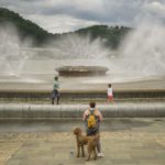 Part of the fountain is working, including three shorter decorative water sprays symbolizing the Allegheny, Monongahela and Ohio rivers that meet at the Point.