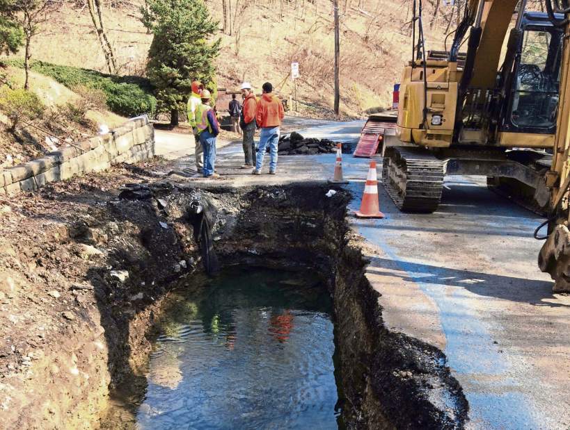 Workers from Butler-based Frank J. Zottola Construction will replace at least eight feet of the 60-inch diameter pipe, PWSA spokesman Will Pickering said. They began excavating on Tuesday.