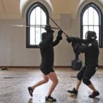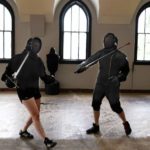 The students practice at Broken Plow Western Martial Arts, a swordsmanship academy dedicated to the lost art of western sword fighting.