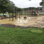 Site preparation and work has been ongoing over the past week, when it is not raining. A pump was being used Friday to drain the playground of water from Thursday’s storm. Some of the playground equipment was stored in a pavilion and still needs to be installed when the weather permits. Yunn said that the drainage pipes must be put in place before it is completed.