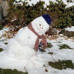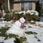 A upright snowman built Saturday in Unity Township had slumped into a yoga position by Sunday morning, when the temperature rose several degrees above freezing.