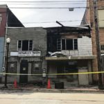 The tavern sits between two buildings in the center of a block flanked on one side by railroad tracks. The fire caused its roof to collapse in the middle.