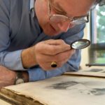 And he uses his trusty magnified glass.