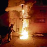 “There was fire shooting out of the first floor doorway,” Tedorski said of the scene when firefighters first arrived.