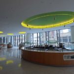 Employees will get a respite from their routine when they go to local “neighborhoods,” which are two-story high, glass-walled lobbies, or lounges, depending on how you want to characterize them, that look out over the same view as “the park.” They service each of the office floors in the building, two stories at a time, and offer spaces for individual use, as well as for informal group meetings.