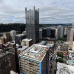 This is the first tall building to go up in Pittsburgh in over 20 years, so a lot of its features, though often seen elsewhere, are totally new here. The 28th floor “park” — a beautiful five-story-high, glass-walled meeting and sitting solarium — has a spectacular presence. Its views from on high encompass Market Square, our three rivers and the hills beyond. This is on a floor where meetings with clients will be held.