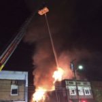Firefighters from five counties were battling a blaze in the building housing Carpenter's Cafe at 229 Longfellow Street in Vandergrift Friday evening.