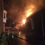 By then the rear of the cafe building remained on fire and threatened nearby buildings, including two houses.