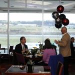 Newly remodeled with a red floral carpet and touches of red throughout the room, The Carvery seats 220 and overlooks the Meadows racetrack.