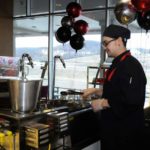 At separate stations, diners can select from entrées such as buttermilk fried chicken, potato-crusted rainbow trout and cauliflower mac and cheese and three soups.