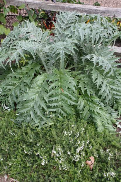 Though the plants are only hardy to zone 7, I do know some local gardeners who have luck over-wintering the mature plants by covering them with a “tent” of fencing filled with straw. Because it is a perennial, cardoon can return for several years if given adequate protection from winter temperatures.