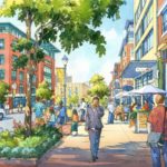 Areas are specified as to the height of buildings, how they will relate to the streets and other factors, but, within those allowances, developers will have considerable flexibility. The development is likely to contain a mix of high-rise and low-rise office and apartment buildings, shops, restaurants, hotels and townhouses.