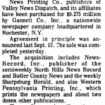 The two papers were rivals until the Valley Daily News' publishing company bought the New Kensington Daily Dispatch in 1960.