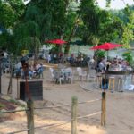 Good vibes music emanates from the large outdoor pavilion bar and restaurant. On the riverside, boats ease into docks and their swimming-suit and shorts-clad occupants stroll to where all the action is.