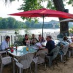 Riverside dining is so popular at the Hofbrauhaus Pittsburgh in the SouthSide Works, manager Dennis Varitek says the staff works hard to “keep it going” even through changing weather, getting diners back on the porch overlooking the Mon as fast as they can when bad weather clears up.