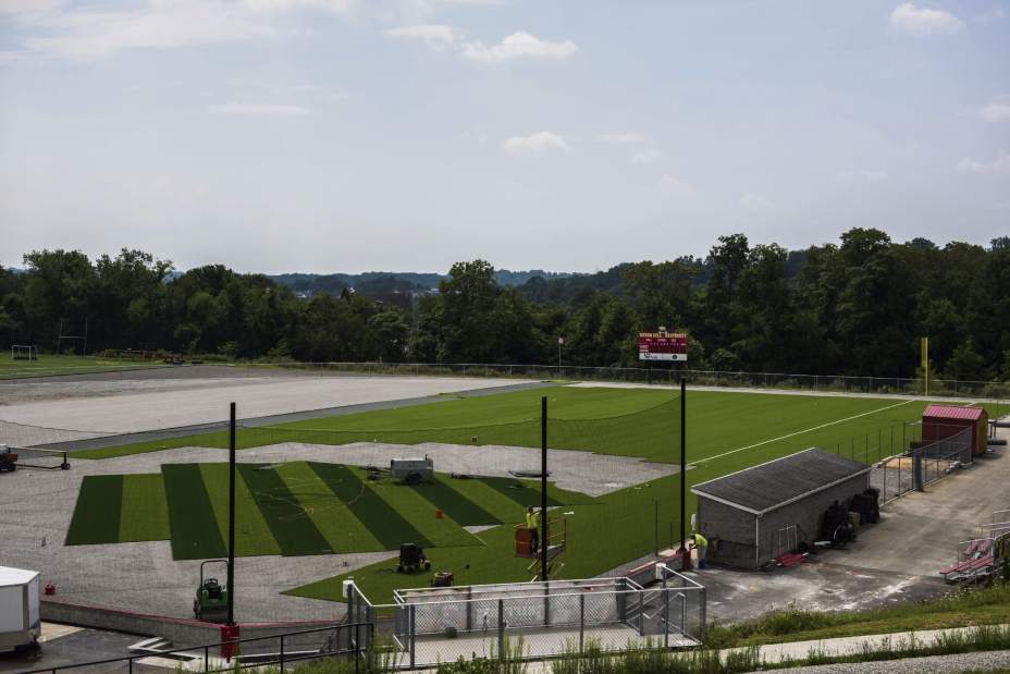 Crews from Pittsburgh-based ProGrass are putting the finishing touches on the baseball field and should have the artificial turf, manufactured by Act Global, installed by early September, said university spokeswoman Jennifer Reeger.