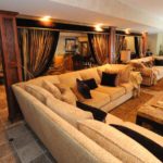 Some of that furniture was made especially for the house, Mihm says. The huge game room in the basement has a couch so long “you could probably put 20 people on it,” he says. The dining room has a glass table designed for the room.