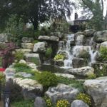 One trick he used here was to add moss to some of the logs and stones that are placed throughout the water feature.
